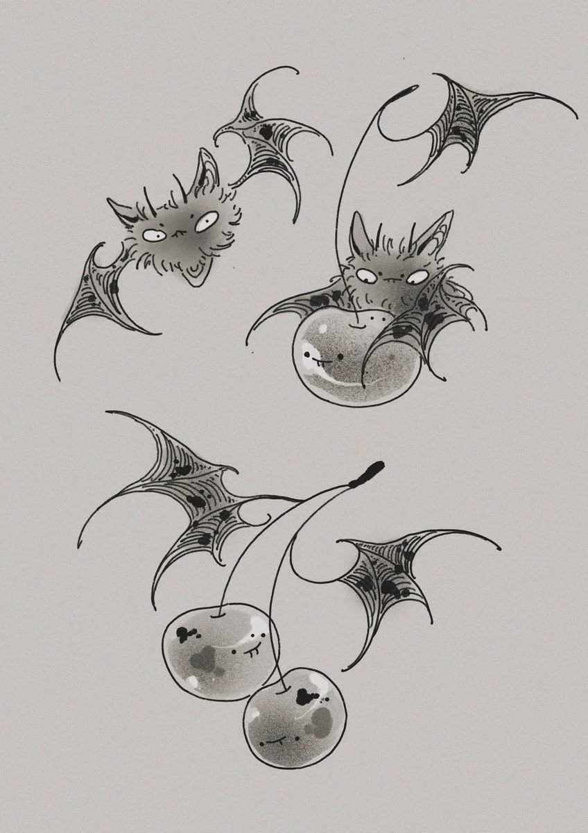 The tiny bat had blended in effortlessly, his small, round body nearly identical to the cherries surrounding him. But then, out of nowhere, a pair of hands grabbed him by the wings and lifted him into the air. Startled, he dropped the cherry he had been holding and, in a panic, bit down on the nearest finger. As he tumbled back into the basket, he let out a squeak—not of fear, but of surprise.