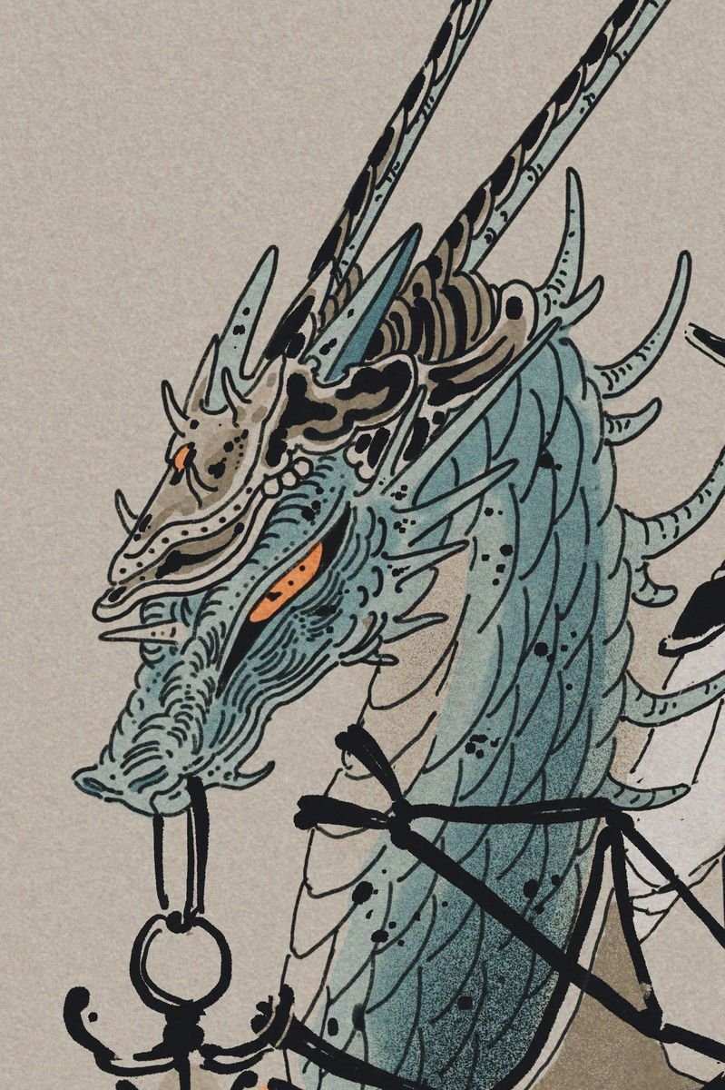 The rider’s mount moved gracefully, like a dragon gliding over the earth. Its scales shimmered under the lantern’s light, and as it shifted, the teapots and cups hanging from its saddle clinked softly, glowing faintly with enchantment. These weren't ordinary tea items—they pulsed with latent magic, as if once used in rituals or brewed with ingredients from otherworldly realms.