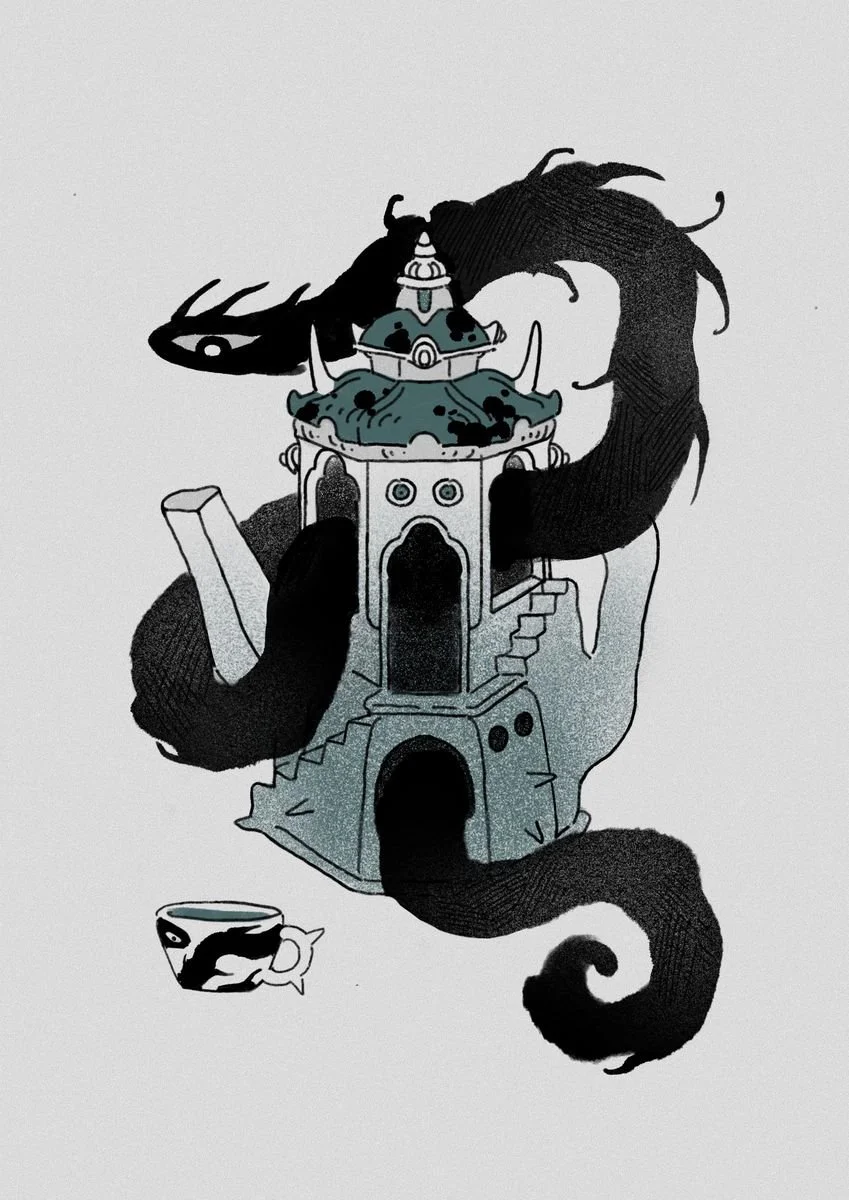 To keep him occupied, Emha began teaching Coalby everything she knew about tea. She brought him books, utensils, and rare tea leaves from nearby markets. Coalby threw himself into the work, and soon his knowledge of tea rivaled even hers. The routine gave him a sense of accomplishment, and his depressive moments began to subside—though Emha knew his longing for a humanoid form hadn’t gone away entirely.