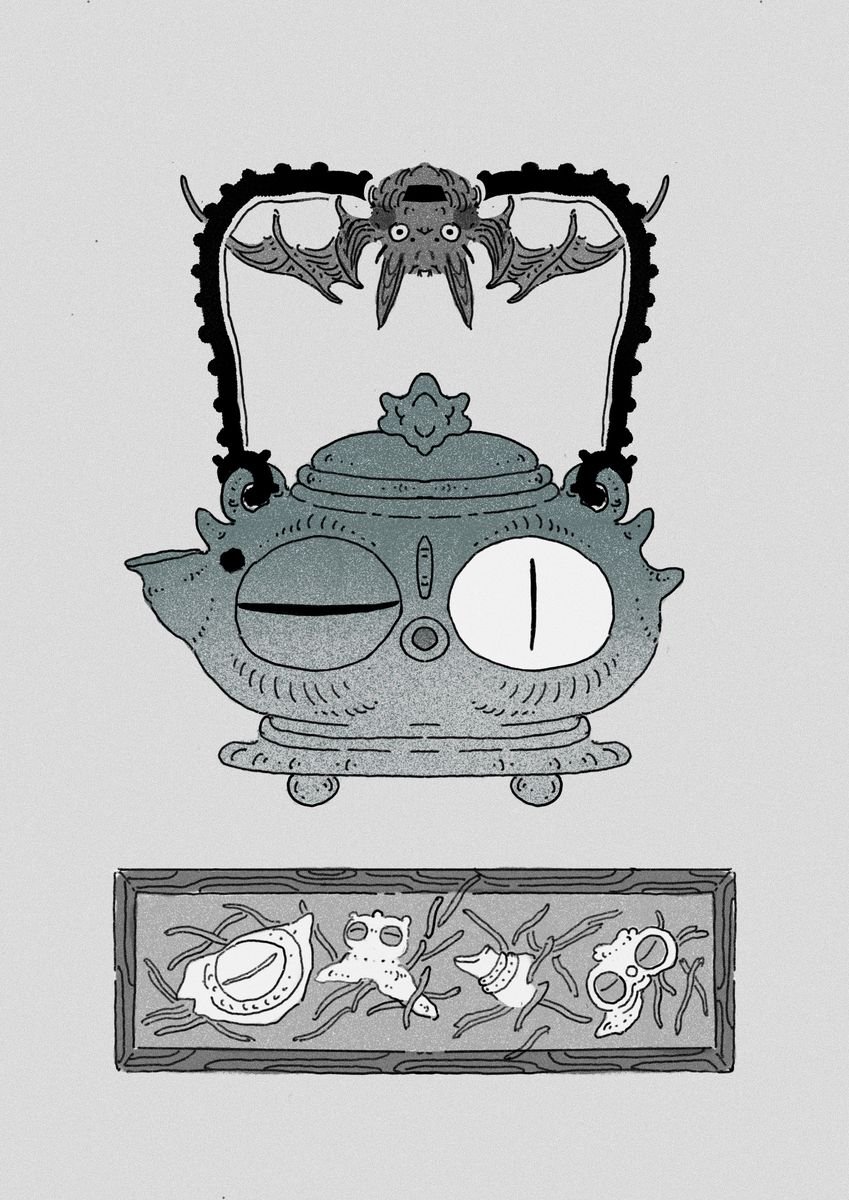 The teapots in The Haunted Tea House were inspired by dogū figurines, which I completely fell in love with while exploring Japan. These lil alien dudes are so fascinating, otherworldly. Even though no one really knows for sure what they were made for, what really got me, though, was learning that many of them were made to be broken. It stuck with me, and it became part of the story’s core.