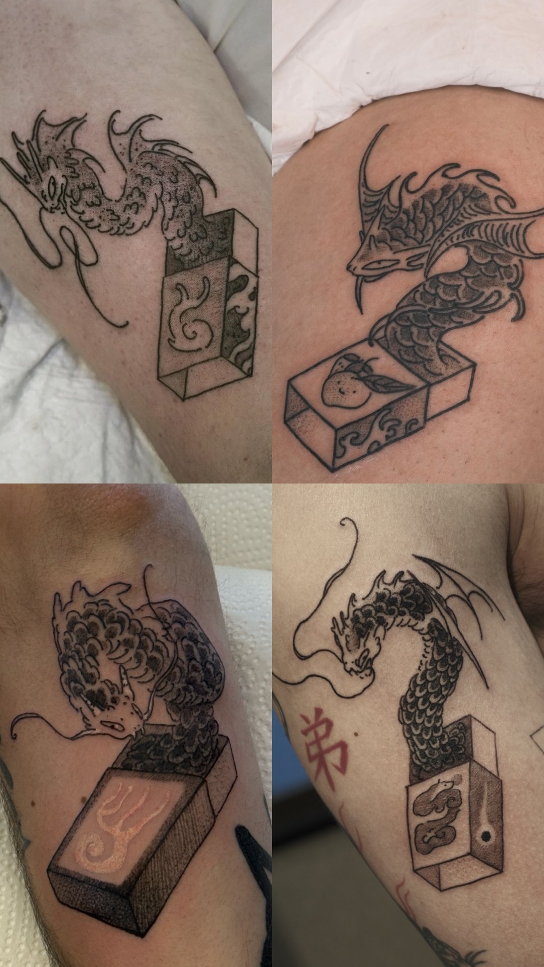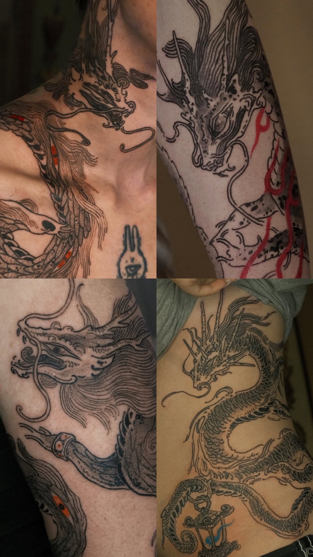 Large dragon tattoos are major projects.